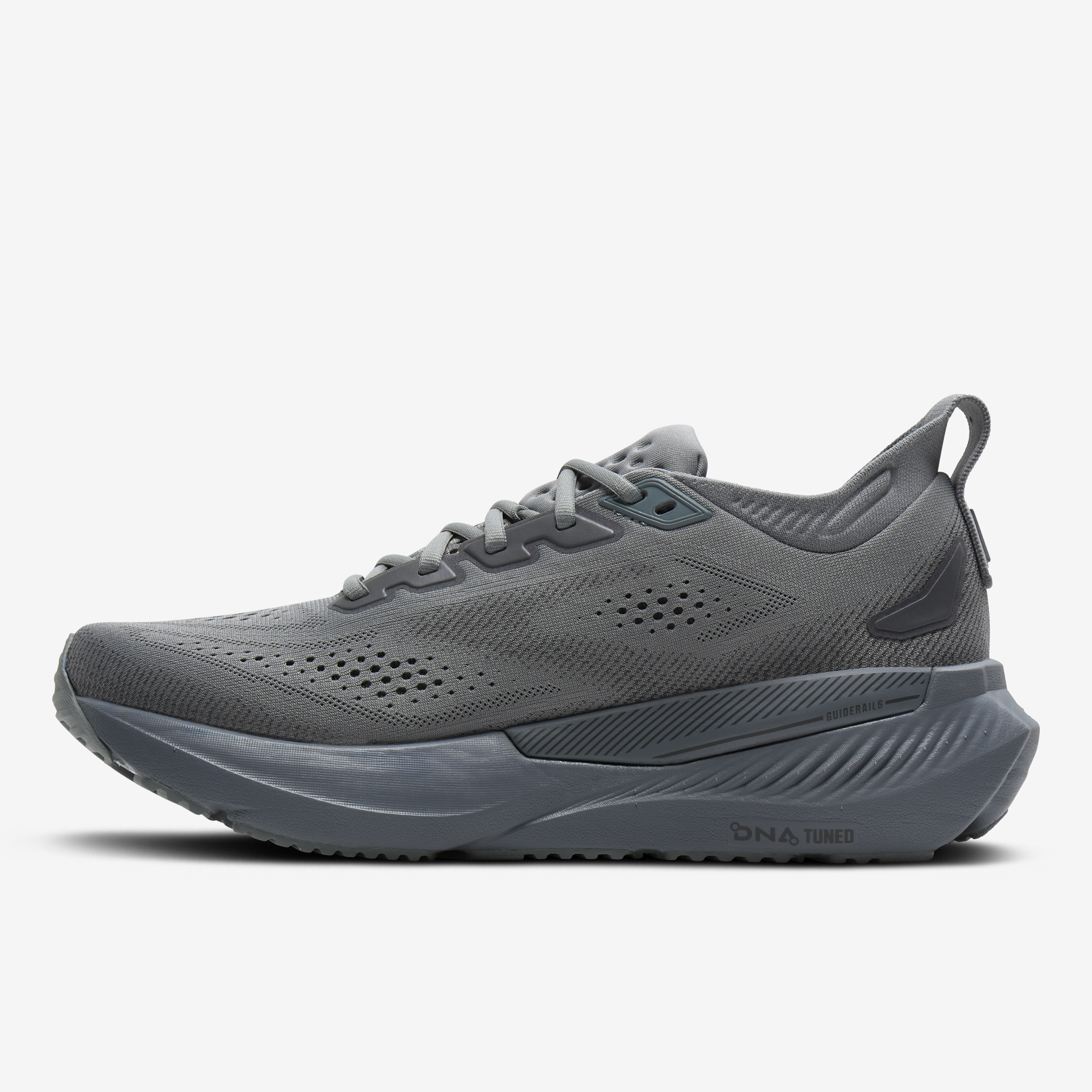 La nouvelle Brooks Glycerin GTS 23 est une chaussure conçue pour offrir une expérience de course fluide et hautement amortie grâce à sa semelle intermédiaire enrichie en DNA TUNED. Cette technologie, qui utilise l'infusion d'azote par zones, permet des atterrissages tout en douceur et des impulsions dynamiques, avec l'ajout de 2 mm de mousse supplémentaire à l'avant-pied pour encore plus de confort. Le système de soutien GuideRails™ intégré aide à stabiliser les mouvements excessifs du corps, tandis que la nouvelle empeigne en maille Triple Jacquard assure un ajustement souple, respirant et parfaitement adapté à la forme du pied pour savourer chaque kilomètre sans distraction.
