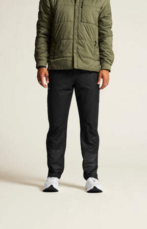 Pantalon léger pour hommes, conçu pour les courses par temps humide. Fabriqué en tissu 2 couches fin et extensible, il offre une protection exceptionnelle contre les intempéries tout en étant respirant. Il dispose de coutures scellées, d'un cordon de serrage à la taille et d'une fermeture éclair aux jambes pour un enfilage facile.