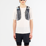 Sac d'hydratation d'une capacité de 12L de rangement. Muni de deux gourdes molles pouvant chacune contenir 500 mL de liquide. Sangles à l'arrière pour positionner les bâtons d'une manière facilement accessible.