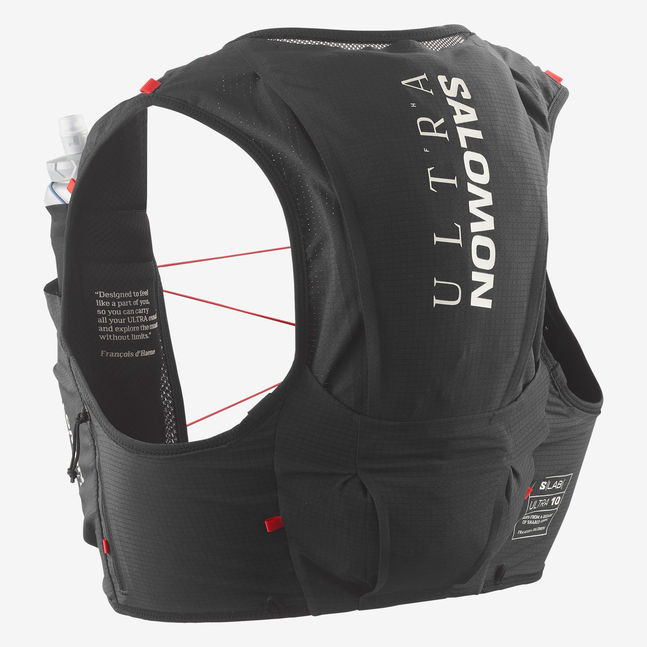 Designed to exceed the highest performance standards in ultra-trail, the S/LAB Ultra 10 is so light and comfortable that you can completely forget you're wearing it. Inspired and created by François D'Haene, this is our most versatile jacket. lighter designed specifically for ultra races. It has many easy-access pockets to store all your essentials and large hydration bottles.